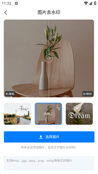 4、通过智能的内容算法,可以有效的帮助大家进行水印去除处理,达成你的去水印目的;