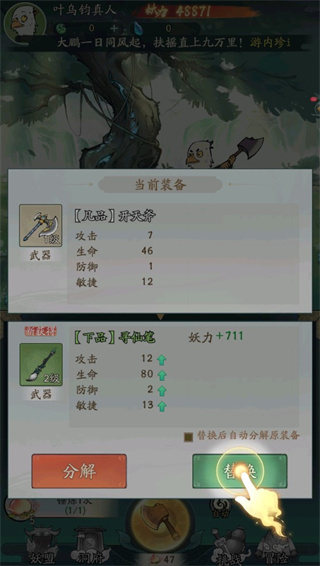 3、获得更高级的装备可以进行替换来提升战力,但是有时候并不能完全看战力,游戏装备有特殊效果配合其他装备会有意想不到的战斗效果。