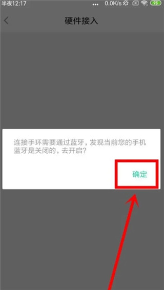 进入到硬件接入这个页面中之后,会在该页面中弹出一个蓝牙开关提示页面,我们点击确定按钮进入。