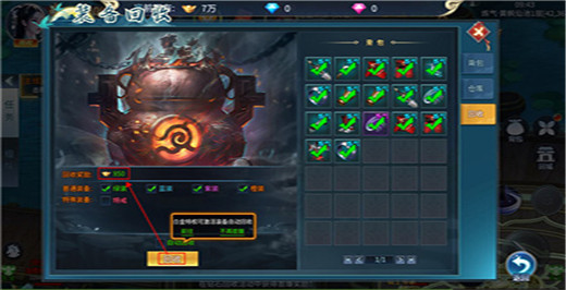 3、还可以在背包内进行装备回收,将低级装备回收为元宝。
