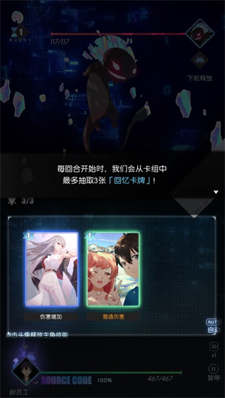 4、在战斗模式中每回合将会在自己的卡组中抽出3张卡牌。