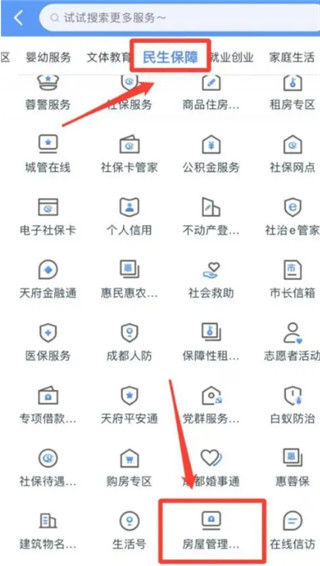 找到民生保障服务中的“房屋管理服务”