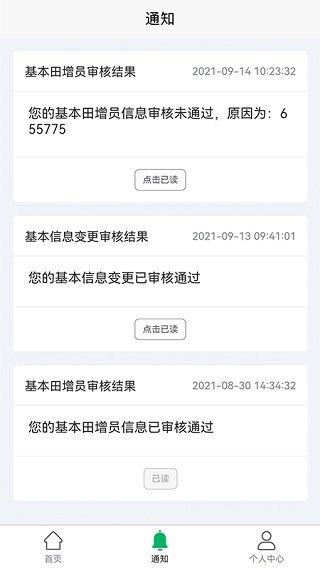 -通知查看,随时查看审核结果,关注最新农业资讯,信息更全面。-各种的农业相关知识内容提高用户的认知程度,带来更好地农业管理模式。
