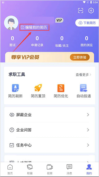2、然后点击个人头像旁边的【编辑我的简历】按钮。