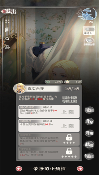 开局就送的一张蓝卡,所有技能都是全属性可用,但是因为减防只有2回合,且比起小烦恼少了增加自身伤害,没有小烦恼的话可以培养