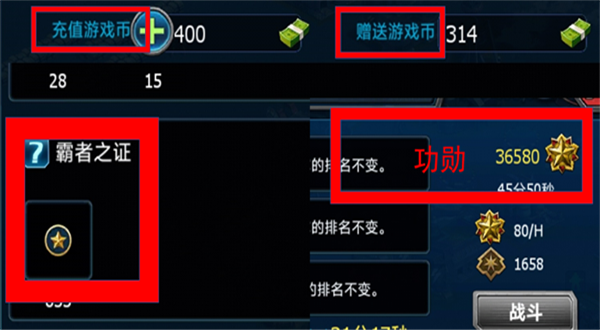 值得说明的资源包括:充值绿币,赠送绿币,霸者之证,功勋。