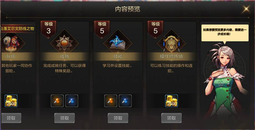 随着等级的提升,会逐渐开启成就、操作修炼场、委托副本等功能,多样化的游戏内容等着勇士们去逐步探索。