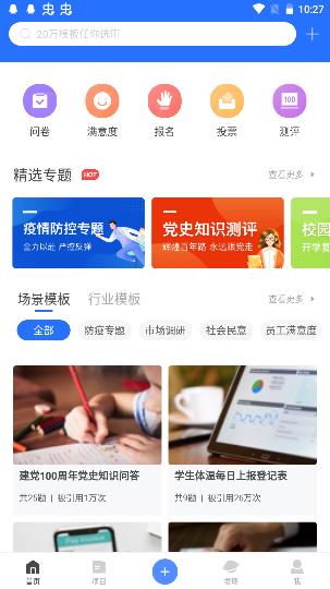 问卷网手机版是一款用于问卷调查、投票的软件,为一些企业和个人提供了问卷的创建发布管理收集以及分析服务,能够方便用户进行市场调研,软件内还有大量的问卷模版,用户可以随意使用,支持将编辑好的问卷一键发布到各个社交平台,轻松的传播以收集更多的数据。