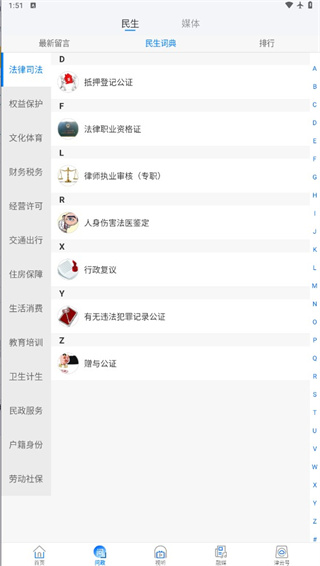 3、点击上方民生词典,用户可以查看常用的证件和民事办理的具体流程,具体地点等信息。