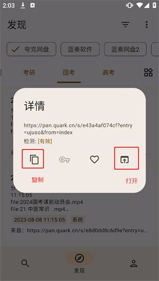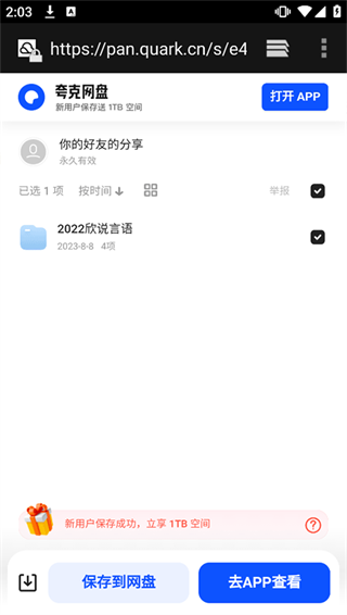 6、复制链接的话就让前往对应网盘app内打开,直接打开资源链接可以在线保存至目标网盘内