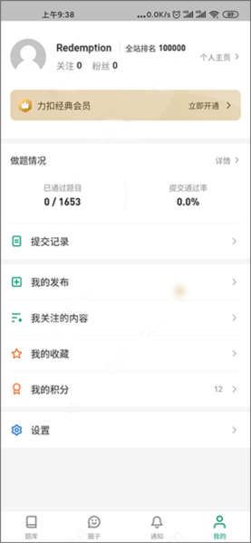 5、最后,在“我的”中可查看到自己收藏的、关注的、发布的、做题情况等内容。