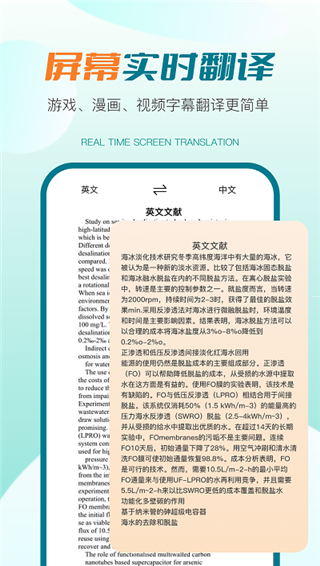 翻译屏幕显示的外语文字,有悬浮按键,按下按键之后,会自动将屏幕中的外语翻译成对应文字。拖动屏幕随即恢复,按需翻译。