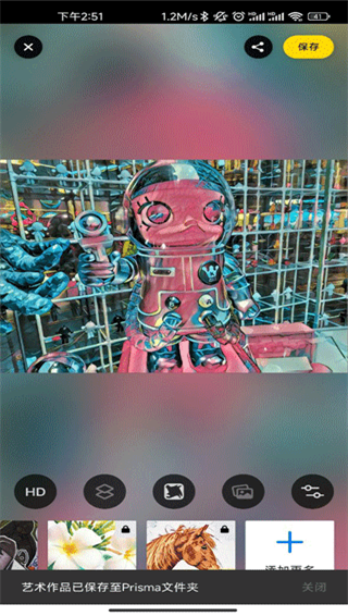 7、将图片编辑好之后点击右上角的“保存”,将图片保存到软件的文件夹中,这时候就制作好了一个漂亮的艺术作品了。