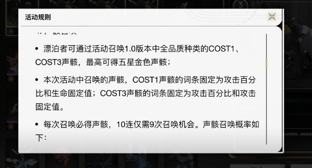 活动获得的:COST1声骸的词条固定为攻击百分比和生命固定值