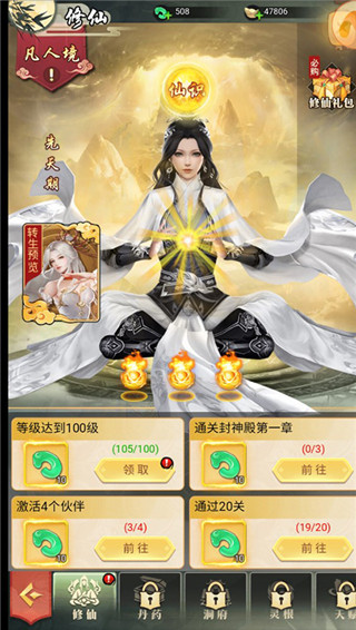 修仙:随着修为进度的提升,可以领取大量仙玉帮助修行。