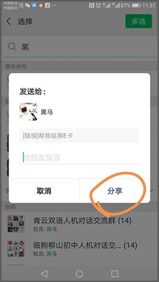 6、点击分享给家长本人或好友帮忙支付。