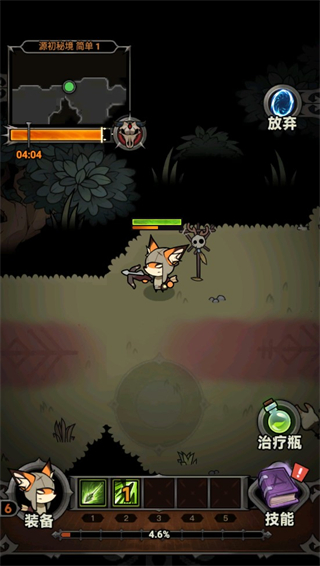 1、进入游戏经历剧情,玩家将在一个充满迷雾的地图中,将会遭遇各种怪物,在左上角地图下方倒计时结束前探索地图,击败足够的怪物,就能引来最终boss,利用你灵巧的走位和强大的输出击败它吧!