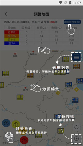 4、在预警信息功能中能够看到所有详细的天气预警情况;