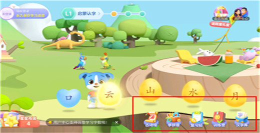 在读环节中为汉字设计了适合其特点的定制跟读互动,充分调动孩子的言语动觉,提供开口机会,增加开口次数,不断巩固和强化字音字形与字义;
