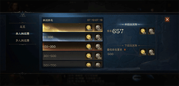 首通奖励:完成单人挑战或者组队挑战的每一层都会获得万能材料、荣誉和符文。