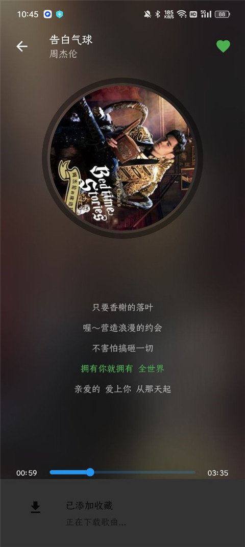 3、选择并确定想要下载的音乐打开,点击右上角图标,显示收藏至歌单即下载