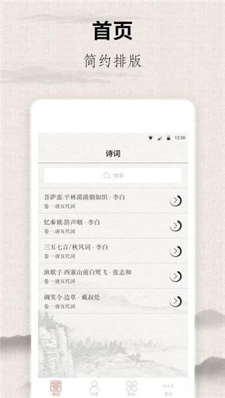 4、排版简约,用户能够清楚的查看,更好的阅读宋词内容,得到优质的服务;