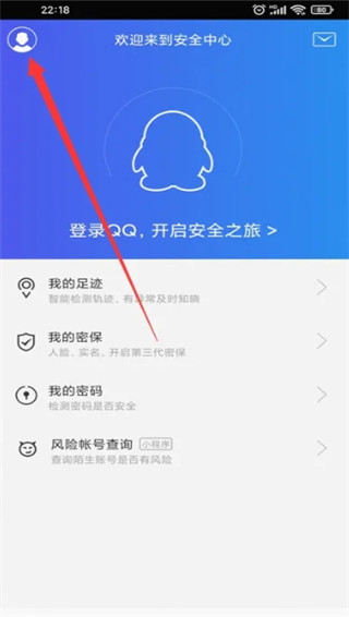 1、登录安全中心在app首页点击头像,选择QQ号登录。