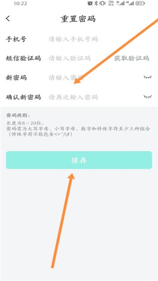 最后输入手机号与输入码火,设置新登录密码,点击下面的保存即可。