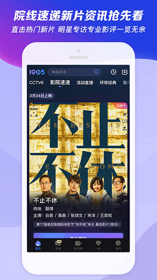 1905电影网app与电视同步直播电影频道,更有随时回看功能噢。