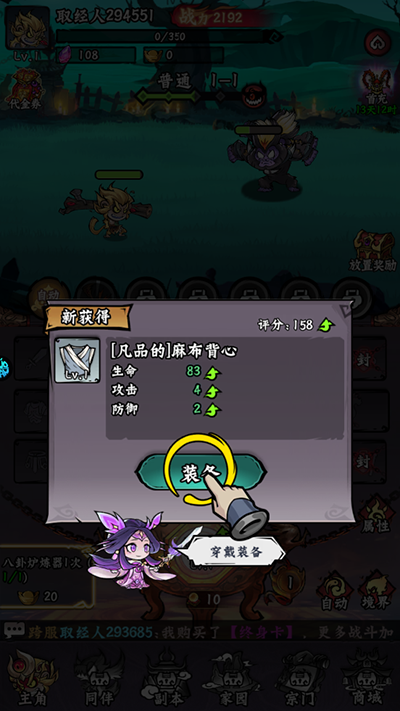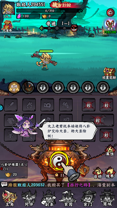 1、开局是个取经人,通过“炼器”获得装备,升级打怪。2、耳熟能详的西游角色,孙悟空、唐僧、猪八戒等。