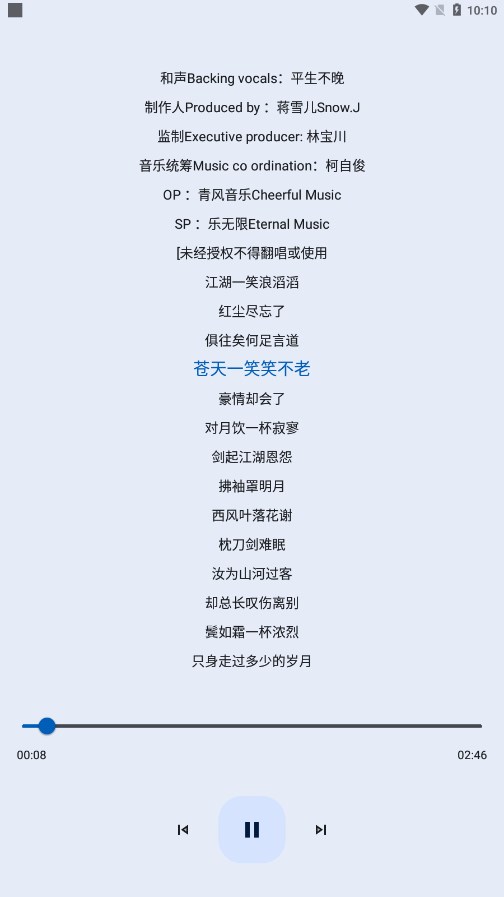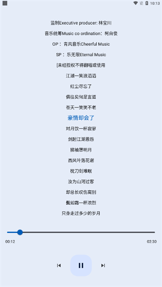 3、歌词显示,免费收听喜欢的歌曲