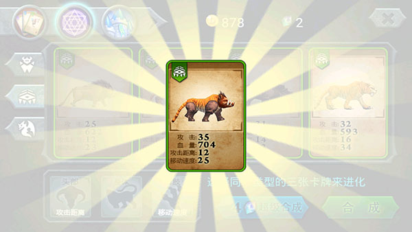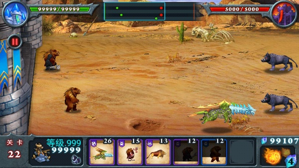 兽王争霸是一款经典怀旧的塔防对战游戏。玩家需要面对一波又一波进攻的猛兽。为了保护自己的领地,必须召集自己的猛兽部队,指挥它们进行战斗。这款游戏的独特之处在于同类物种的合成进化机制,通过不断合成相同种类的猛兽,玩家可以获得更强大的战斗单位,从而在激烈的战斗中占据上风。