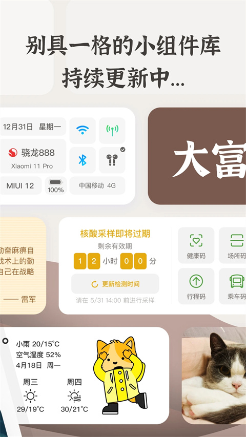 6、持续更新:目前初版组件还比较少,我们将定期推出更多有趣的小组件。