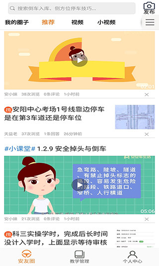 安安车生活app是一款非常实用的驾驶学习软件,为各位想要考驾照的小伙伴们提供了非常方便快捷的培训服务,在这里你可以清楚地了解到整个考驾照的流程,从驾校的选择,到考场时间的安排再到教练一对一服务,这里都提供了相应的视频内容让你选择。