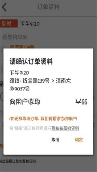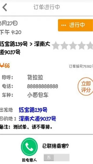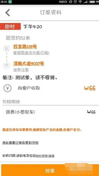 抢单成功以后,电话联系一下客户,然后再去客户发货地,取货,送货,订单完成,点击确认即可完成一次接单。