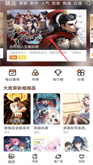 3、首页为大家精选人气和优质漫画,热门神作看不完,每天都有佳作推荐;