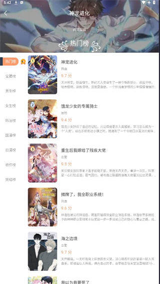 4、点击主页上方排行榜你可以看到各个榜单的最火爆漫画。