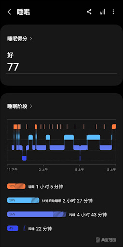 请在睡觉时佩戴您的Galaxy Watch,持续一周,便于我们收集一周的睡眠数据。