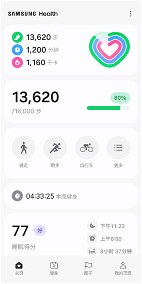 三星健康app官方版是一款专为三星手机用户打造的智能设备健康管理软件,用户可以使用它来查看自己的心率、血压、血氧饱和度等身体健康数据,并给用户指定身体管理计划,保证用户的生活健康。