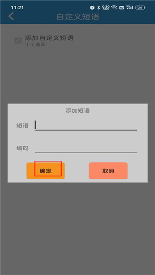 3、在其中添加你想设置的短语,然后填写编号,点击确定即可,下次想发送快捷短语的时候,直接输入编号即可。