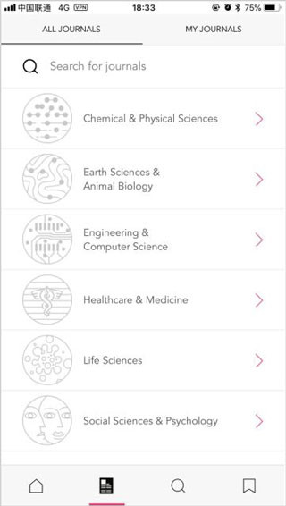 researcher app是一款学术期刊信息聚合软件。它集成了全球上万种科学期刊的内容,覆盖了从生物医药到工程技术的各个领域研究,是获取最新科研资讯的强大工具。通过app,可以订阅来自于数千个顶级期刊和前沿研究领域的更新,实时接收到相关的研究文章,确保不错过任何重要的学术进展。