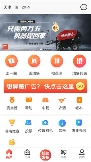 2、而在工具当中我们可以进行计算、面积换算等,还可以看看农机价格以及个人补贴;