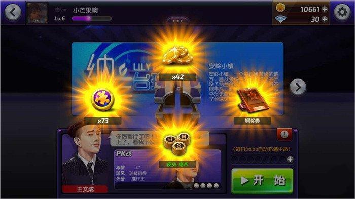 【PK赛】:1V1对战,玩家可与他人匹配对战赢取筹码【大师之路】:台球天后潘晓婷亲自授技,帮助玩家提高台球水平