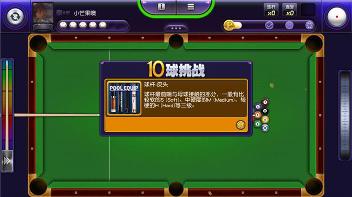游戏里也处处是惊喜。在挑战的开始,玩家们点击挑战框右下角的小圆点,就可以看到下图所示的台球小知识。