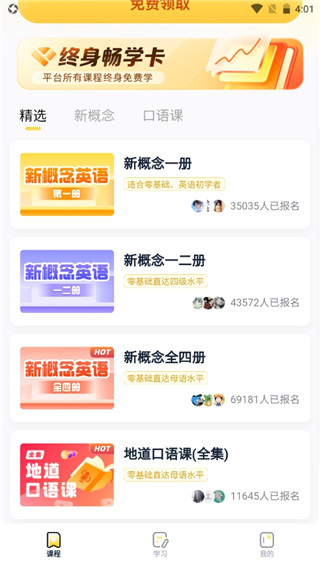 2、其中还包括了新概念课程以及口语课程;