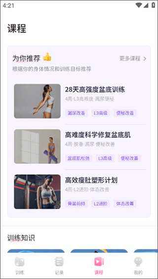3、从入门到进阶,分阶段设置训练课程,凯格尔运动app帮助您逐步提升运动能力。