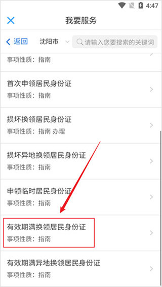 5、进入身份证业务,找到下方的有效期满换领居民身份证。