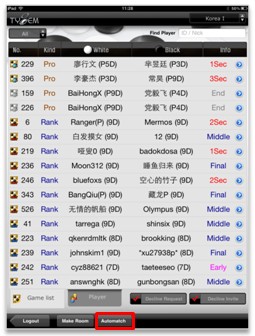 自动对局申请:在大厅点击“Automatch”按钮自动进行对局申请