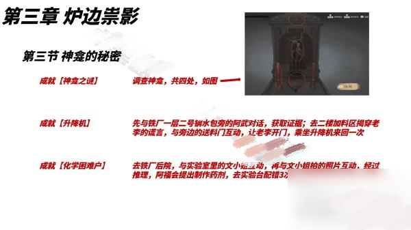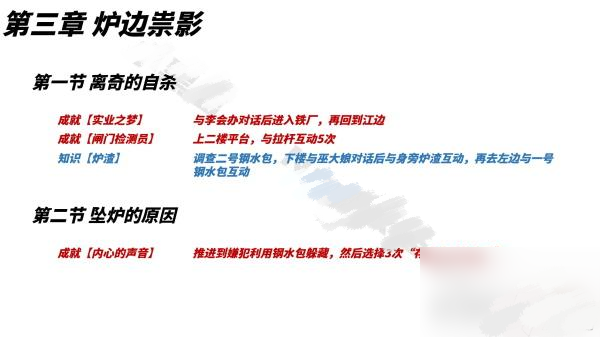 3、玩游戏时得多动动脑子,收集线索、分析证据,找出谜团的答案。