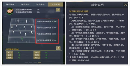 新版本中默契上限等级将提升至200级,同时根据不同球员类型,增加不同的默契类别,产生不同的战力加成。